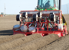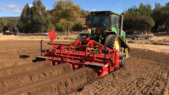 The reverse tiller "Stone Burier" has a rotor that spins backwards while the machine moves forward. This motion throws material against a specially designed filtering grill. Anything that is fine enough to get through is brought up to the surface while debris including stones and organic matter are delivered deeper into the ground. The end result is a perfect bed with fine soil ready to plant. This machine has a variety of attachment accessories available to obtain the most out of your one pass operation. The reduction of passes reduces overall cost including fuel, time, labor, compaction and a reduction of HP needed. Accessories include: packer rollers, bed formers, fertilizer and drip tape applicators, and plastic layers.